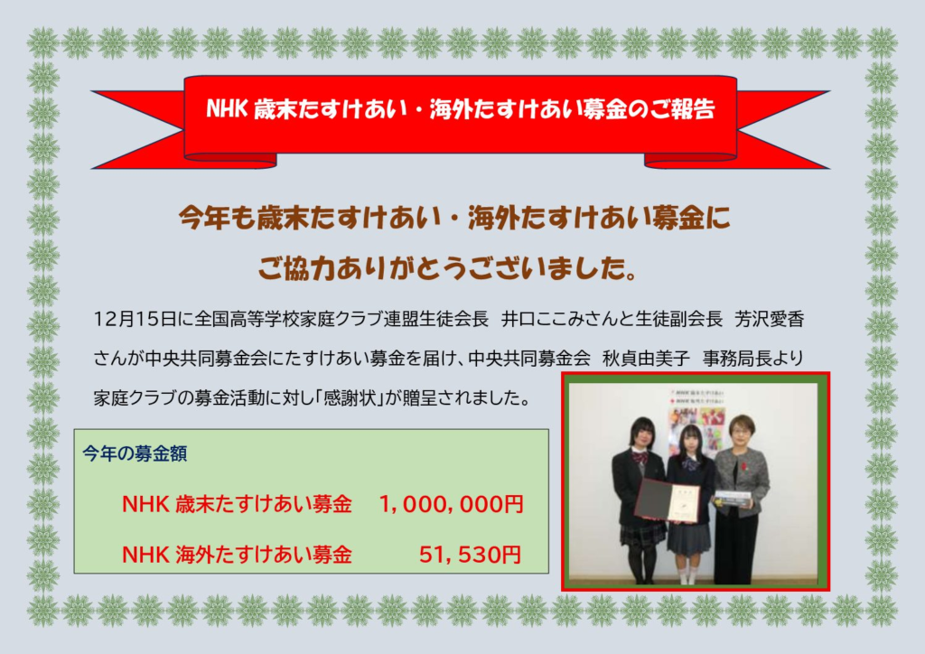 NHK歳末たすけあい・海外たすけあい募金のご報告