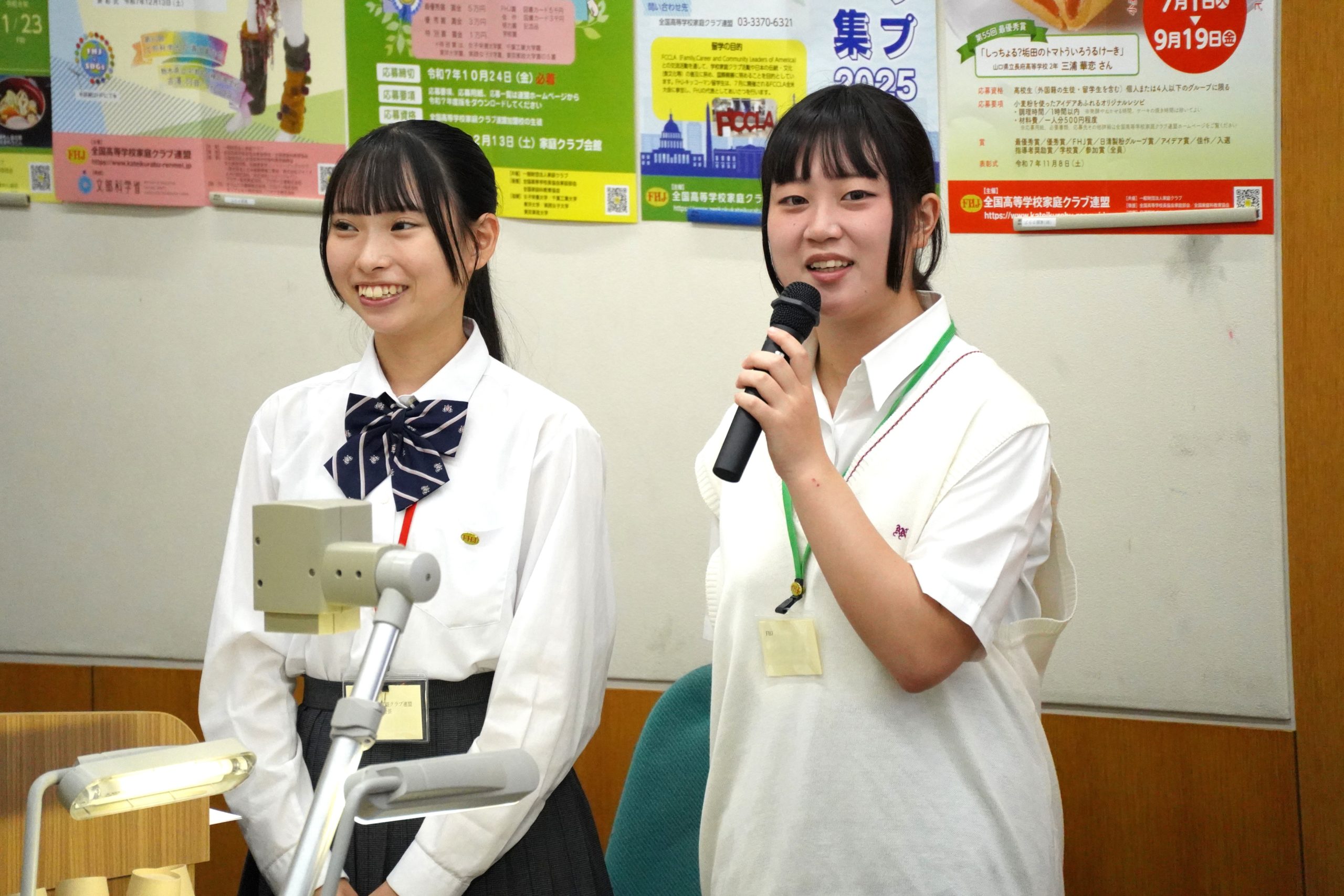 - 分科会グループごとに協議題「チャレンジしよう 未来へつなげる 学校家庭クラブ活動」について、家庭科で学習したことを活かし、学校や地域に活動の場を広げ活動を深めていくには何が必要か、共に家庭クラブ活動を未来へとつなげられるよう意見を出し合いました。全体会ではそれらをまとめたPowerPointによる発表を行いました。(各グループのスライドは、「会員ページ」より閲覧できます。
