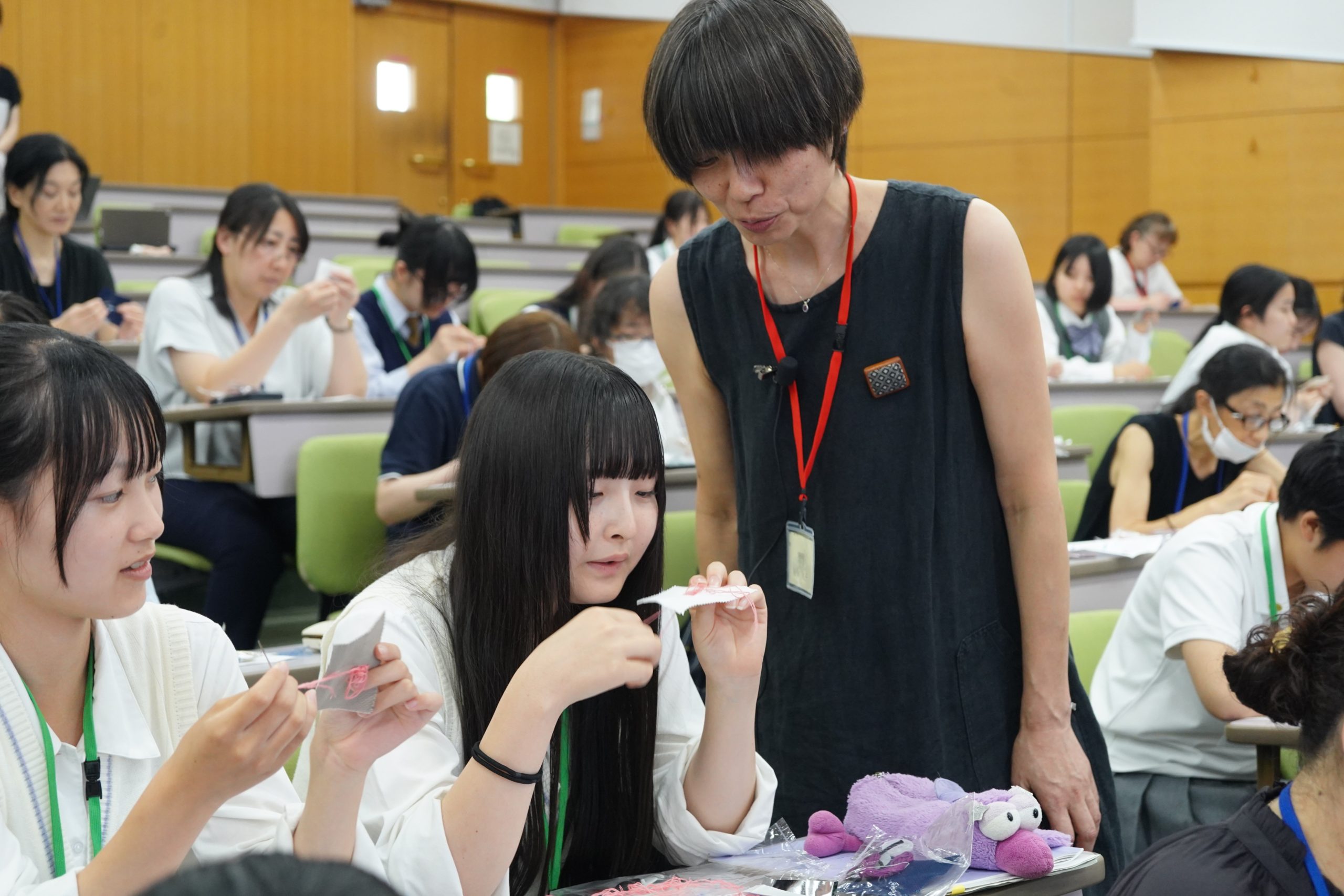 この講座は、毎年7月下旬頃に代々木の国立オリンピック記念青少年総合センターにおいて2日間のプログラムで実施しています。クラブ員講義や分科会では、「生きる力」を育む家庭クラブ活動の大切さと、それを実践していくリーダーとしての自覚や課題発見への気づきを育てるために協同学習やプレゼンテーションが行われます。そして、リーダーとしてのスキルアップを図るため、コミュニケーションスキルや表現力を磨くためのワークショップも行っています。特に、体験講座においては、様々なものづくりや伝統文化を学び、その成果は都道府県連盟でのセミナーや養成講座で多くのクラブ員に伝達講習がなされています。
