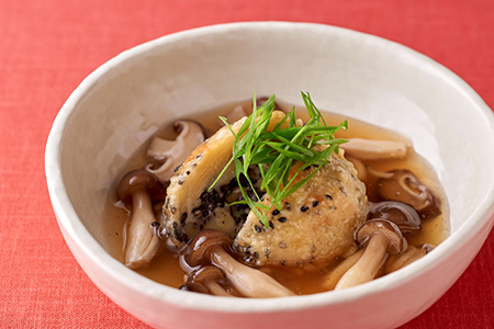 「ゴマ麩と2種のキノコあんかけ」