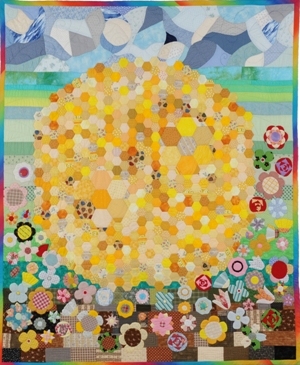 優秀賞「パッチワークキルト Honey comb ~ 蜂の巣~」長崎県立諫早商業高等学校 3年 学級共同作品