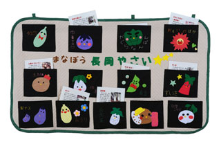 佳作「ウォールポケット&布絵本 まなぼう長岡やさい!」新潟県立長岡商業高等学校 3年 吉荒 綾香 他14名 -