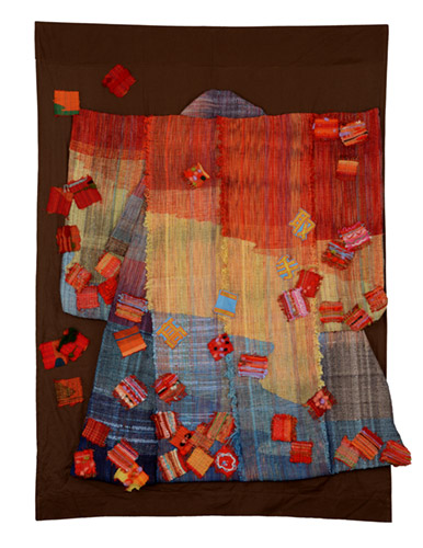 さをり織り・タペストリー 流水紅葉染糸振袖茨城県立取手第二高等学校 3年 庄司麻由 佐藤和咲 山根嘉英